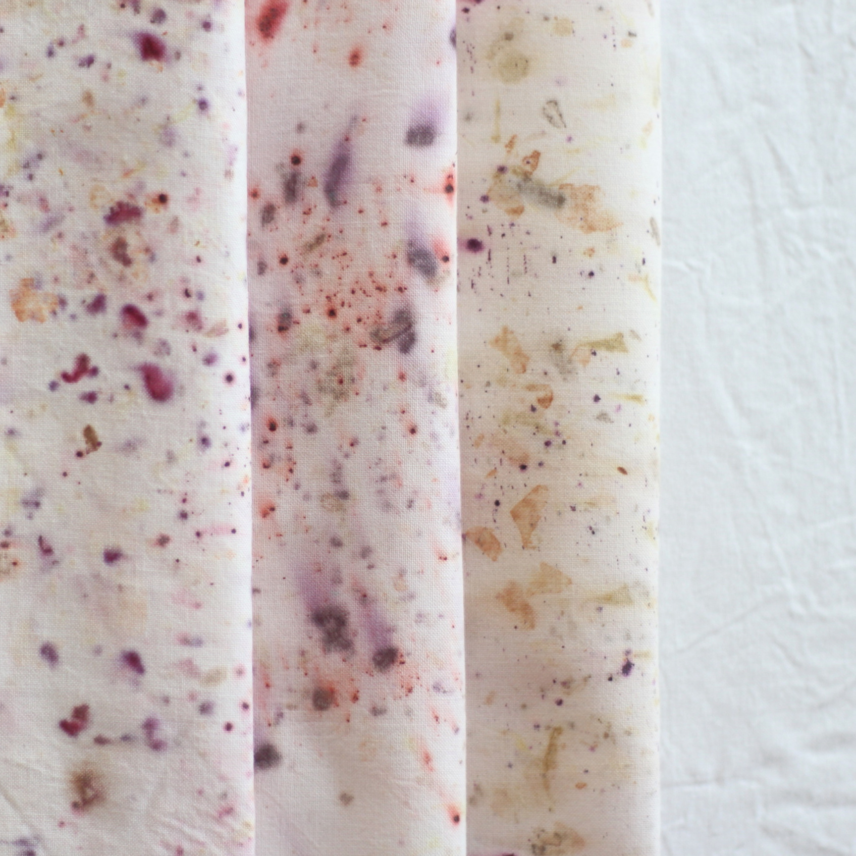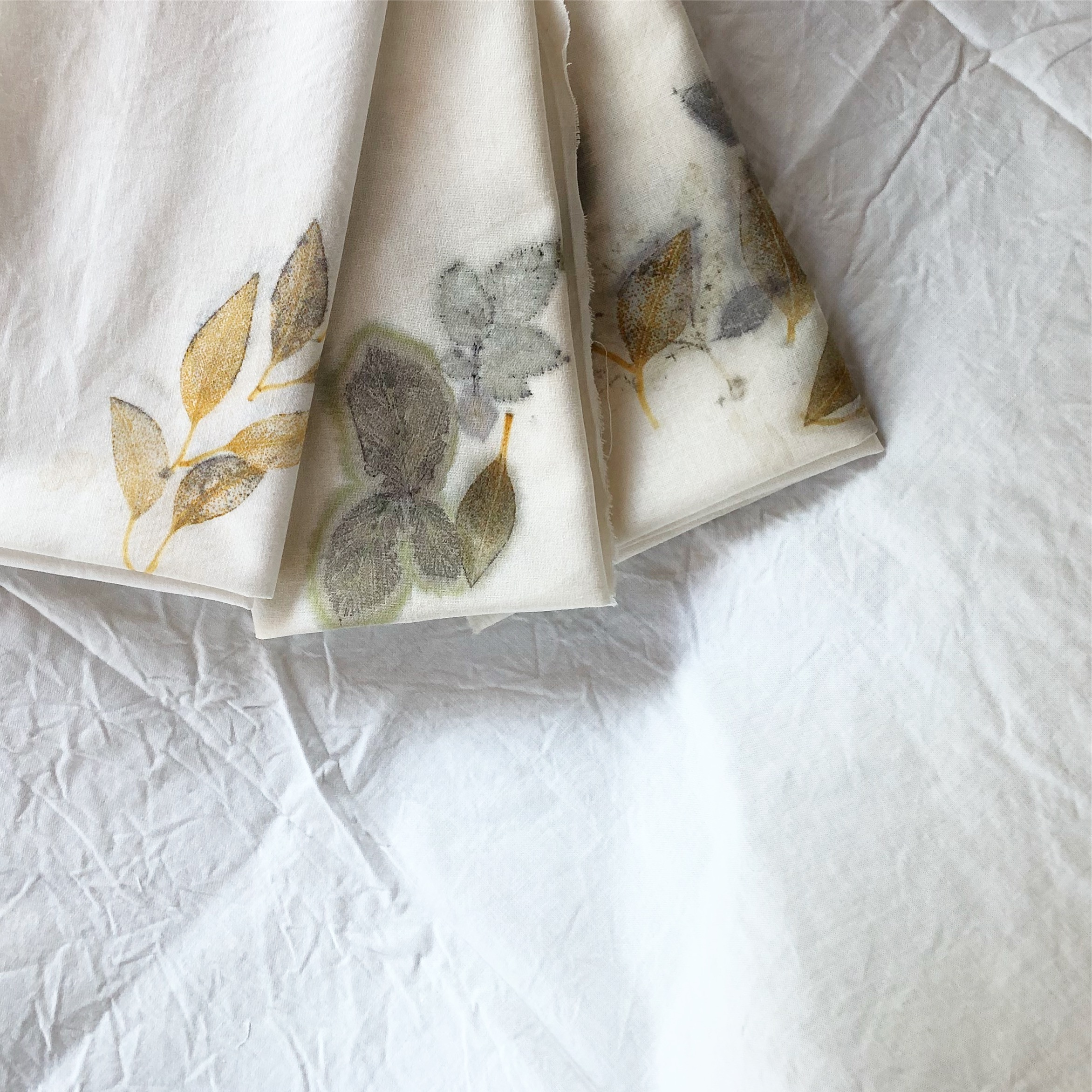 La naturaleza nos regala colores y patrones increíbles para nuestras telas y fibras. A través de los procesos de tinción natural y estampación botánica podemos crear telas de gran belleza como estas: